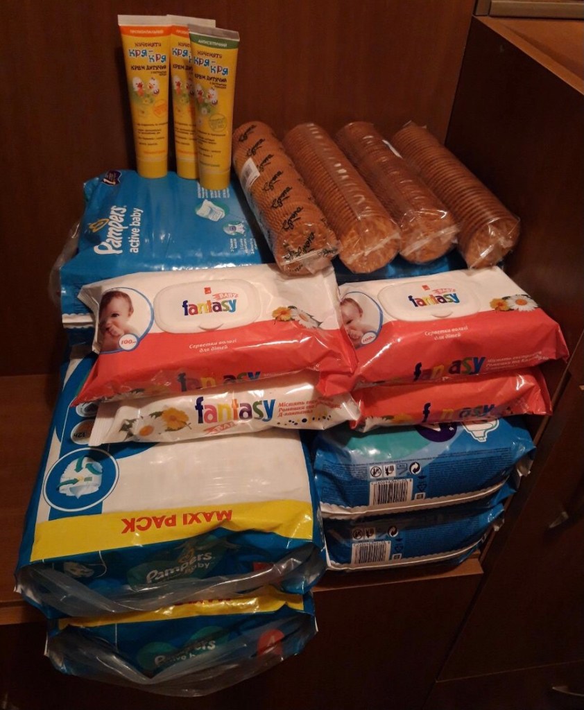 Diapers, crackers and diaper rash cream headed for an orphanage.